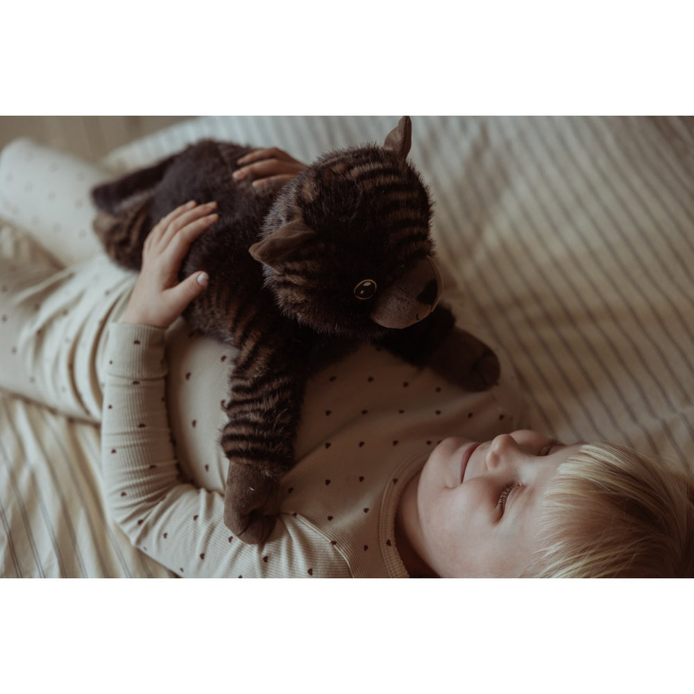 Characterized by its vibrant black eyes and carefully considered weight of 1.2 kg, this teddy cat ensures a safe and appropriate level of heaviness—never exceeding 10% of your child's body weight. Its easy-to-carry size makes it perfect for comforting on the go or for cozy snuggles at bedtime.