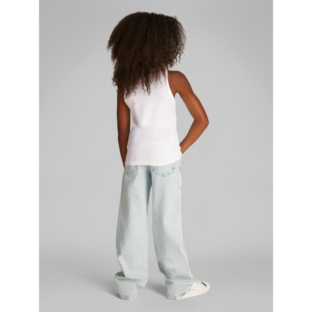 Introducing the Calvin Klein Bright White CK Logo Tank Top, a stylish and comfortable choice for children's casual wear. Made from soft, breathable fabric, this tank top features a bold CK logo design that stands out in a crisp white color. It's crafted for both comfort and durability, ensuring easy care and a great fit for all-day wear. Perfect for a variety of settings, from playdates to picnics, it offers both style and ease for your child's everyday adventures.