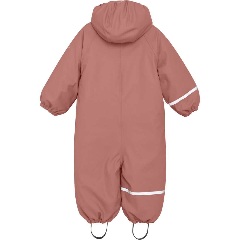 Discover the cozy charm of the CeLaVi Brick Dust Rainwear Suit, crafted from robust PU material and perfect for playful adventures in any weather. This solid color rubber snowsuit excels in functionality with a tested water column pressure rating of 10,000 mm, ensuring complete waterproof protection. Its thoughtful design includes a front-opening waterproof zipper with a protective chin guard to prevent any discomfort under the chin. For added warmth, the suit boasts a snug interior lining, and its detachable hood offers flexibility in changing conditions. The adjustable rubber foot straps are ingeniously designed to tuck under boots, securing the suit in place to avoid any ride-up as children explore. Safety is paramount with reflective details strategically placed across the suit for visibility. Plus, a handy inside name tag makes this snowsuit easily identifiable. Best of all, parents can feel good about their choice as this suit is certified according to the Global Recycle Standard (GRS), made with 66% recycled material, aligning durability with eco-conscious craftsmanship. Whether building snowmen or splashing in puddles, this CeLaVi suit keeps little ones dry, warm, and ready for outdoor fun.