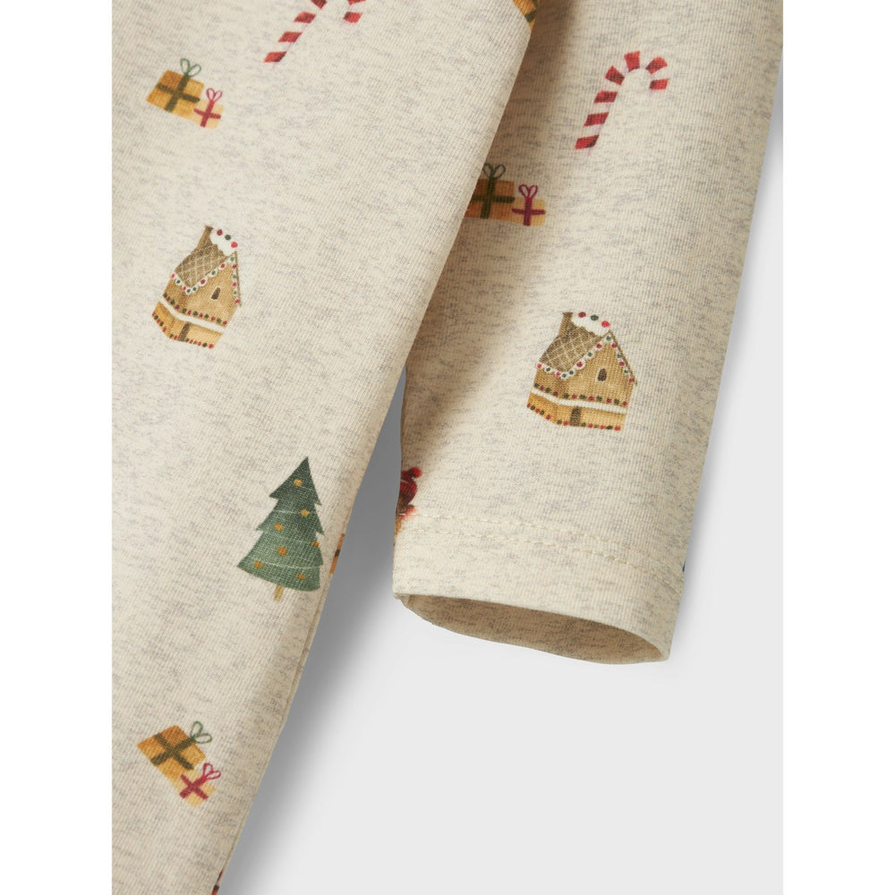 Dress your little one in the 'Name It Peyote Melange Nbnroccas Nightsuit', perfect for a cozy and cheerful Christmas season. Made from jersey, this sleepsuit is both lightweight and stretchy, ensuring comfort with a soft touch inside and out. It features long sleeves, press stud fastening for easy changing, and a delightful all-over print that captures the festive spirit. Remember to keep it away from fire, and enjoy seeing your child move freely and comfortably in this adorable outfit. Perfect for holiday nights, this suit combines style, comfort, and practicality. Closure: Press Stud Materials: 95% Organic Cotton, 5% Elastane Extra: The main material in this product contains a minimum of 50% organic cotton. Organic cotton is grown without the use of harmful chemicals. Organic cotton farming protects natural resources and biodiversity.