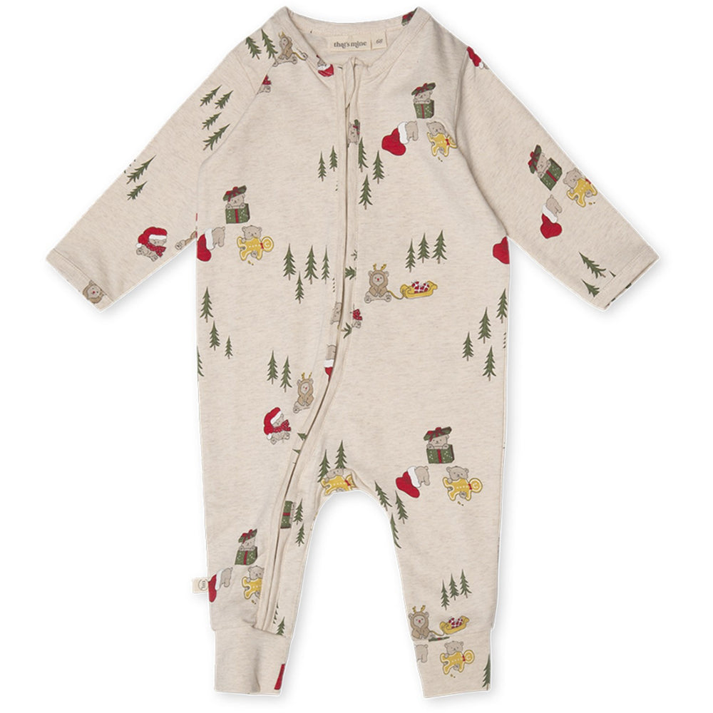 Introducing the cozy 'That's Mine Christmas Polar Bear Mathie Onesie', perfect for the festive season! Crafted from organic cotton, this adorable onesie features a convenient two-way zipper for swift diaper changes. Its versatile design allows it to double as comfortable nightwear or a casual home outfit. Embrace the festive spirit with this practical and stylish must-have for your child's wardrobe.