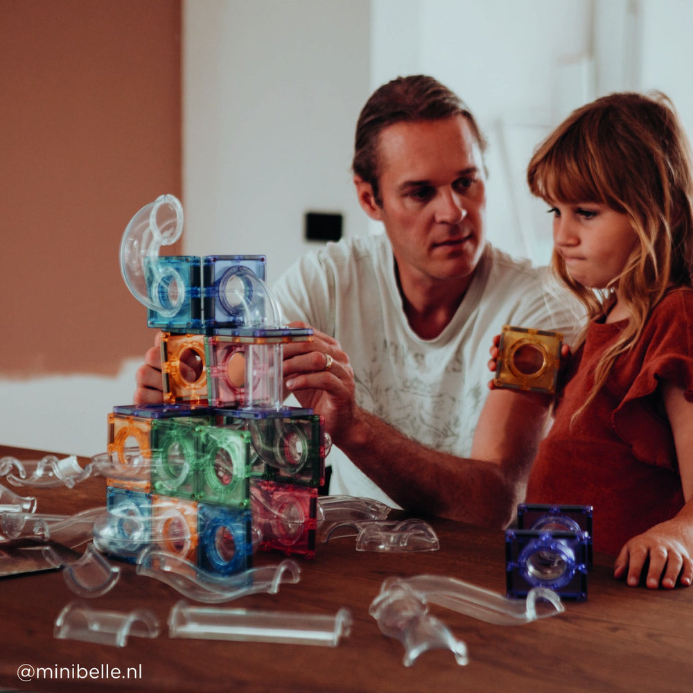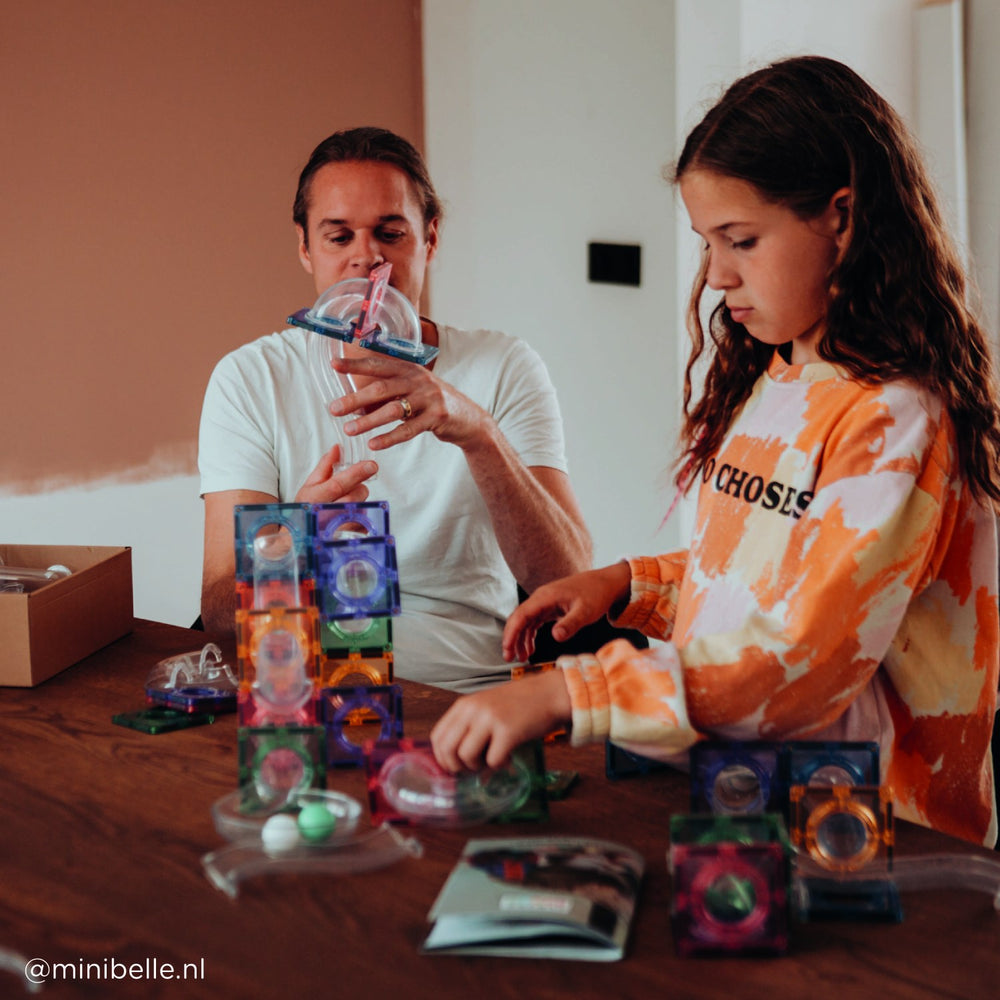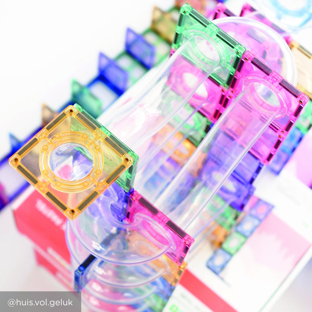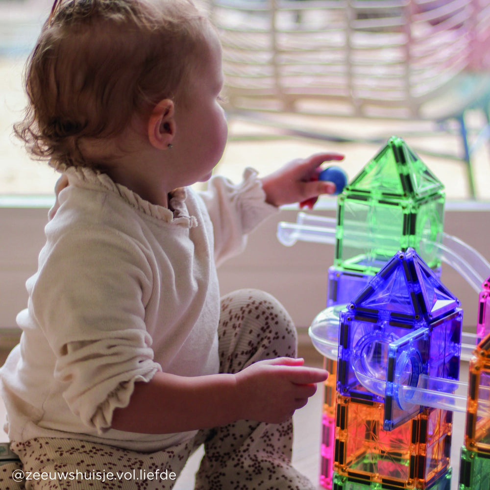 The magnetic toys are crafted from durable materials, built to withstand numerous play sessions. Lightweight and easy to assemble, this set is also simple to store and maintain, making it an ideal addition to any playroom. Expandable with other compatible Cleverclixx sets, it provides a fun and beneficial way for children to learn and explore as they play, fostering creativity and cognitive development in kids from a young age. Step into a world of colorful imagination and inventive play with the Cleverclixx Pastel Ball Run!
