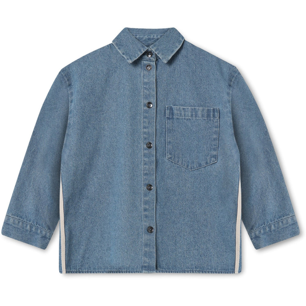 Dress your little one in the Fliink Medium Denim Blue Donny Blouse, a long-sleeved denim shirt that combines timeless style with a playful touch. Crafted from 100% cotton, this shirt features a classic collar, metal buttons, and sporty cotton bands along the sides for added flair. The loose, oversized fit ensures comfort, while the wide cuffs and classic chest pocket add functional charm. It's easy to care for—simply machine wash at 30°C. Ideal for everyday wear or special occasions, this blouse promises both style and durability. Materials: 100% Cotton Washing instructions: Remember to follow washing and user instructions