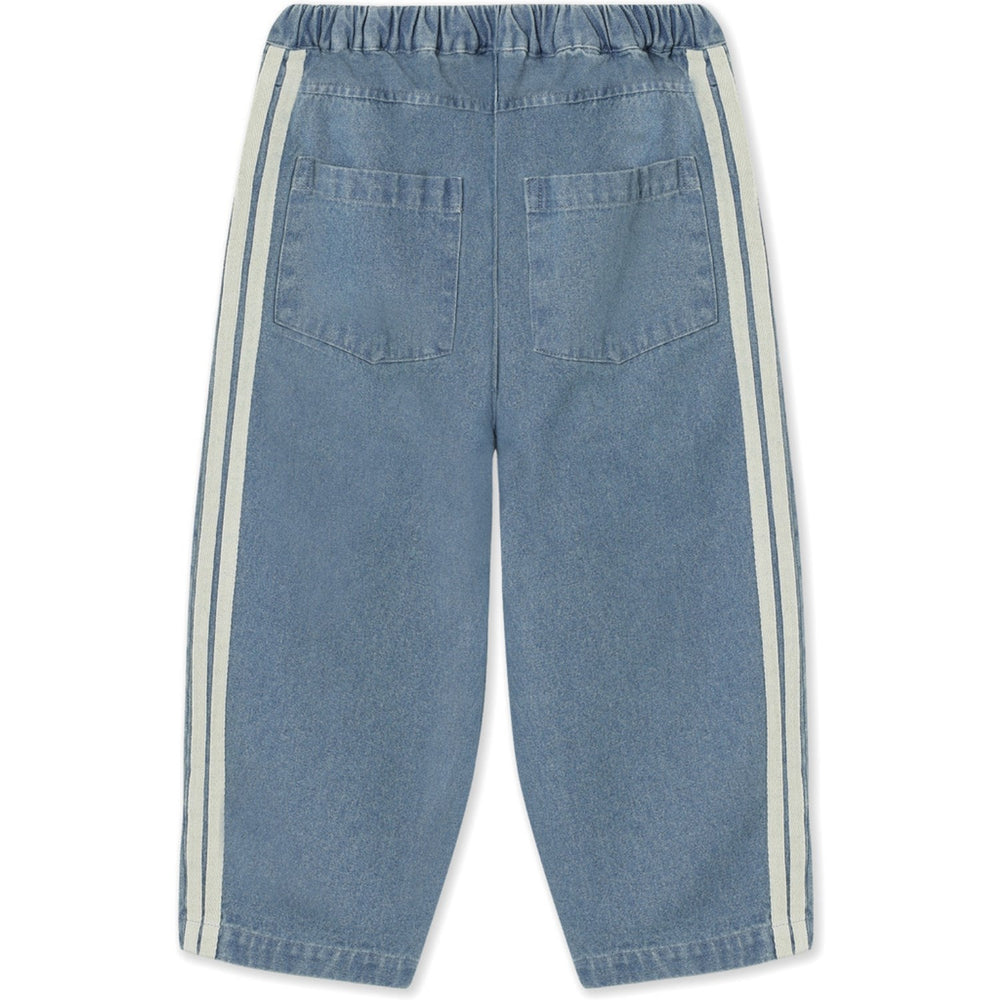 Discover the stylish comfort of our Fliink Medium Denim Blue Donny Pants, perfectly crafted for your little one's active days. Made from 100% cotton, these denim pants boast a flexible elastic waistband and adjustable cotton drawstring, ensuring a snug, custom fit. The roomy design enhances mobility, making them ideal for both play and daily wear. Accentuated with sporty cotton stripes along the sides and equipped with practical side pockets, these pants not only look great but are also highly functional. Easy to care for, they can be machine washed on a gentle cycle and should be air-dried flat for best results. Dress your child in these versatile pants for endless comfort and style. Materials: 100% Cotton Washing instructions: Remember to follow washing and user instructions