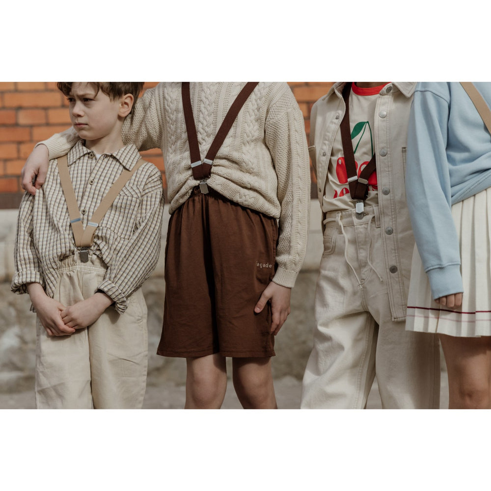 Discover the charm of our Silly Silas Kids' Braces, perfect for adding a touch of sophistication to any outfit. Crafted in a delightful chocolate brown, these sturdy belts boast an adjustable fit, ensuring comfort and durability for playful children. Ideal for both casual and formal wear, they keep trousers neatly in place while enhancing your child's style.