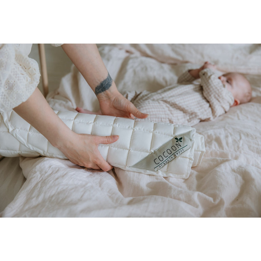 Discover the ultimate sleep solution for your little one with the Cocoon Kapok Mattress Maxi/Boxspring Comfort. Crafted from 100% organic and hypoallergenic kapok fiber, this mattress offers a safe, chemical-free environment ensuring a serene and healthy sleep for your baby. The natural properties of kapok not only provide exceptional comfort but also excellent temperature regulation, making it ideal for maintaining your child's comfort throughout the night. The mattress meets rigorous EU safety standards, as evidenced by its compliance with EN 16890:2017+A1:2021, ensuring it aligns with the highest safety requirements. The kapok fiber's inherent resistance to bacteria and dust mites enhances its suitability for children, particularly those with allergies, offering peace of mind to parents about their child's sleeping conditions. Moreover, the mattress size is perfectly designed to fit Babybay Comfort, Babybay Maxi Comfort, and Babybay Boxspring Comfort models, with dimensions of 45x89 cm, ensuring a snug and secure fit. For those who prefer an edge-to-edge fit, a slightly larger version measuring 51x89 cm is also available. Versatile and easy to maintain, the Cocoon Kapok Mattress supports frequent airings and reversals to prolong its lifespan and maintain its freshness. The unique kapok material efficiently wicks away moisture, preventing dampness and fostering an ideal sleeping environment. In summary, choosing the Cocoon Kapok mattress means opting for a comfortable, safe, and hygienic sleep environment for your baby, conducive to sublime comfort and excellent health benefits, enhancing both sleep quality and overall well-being.