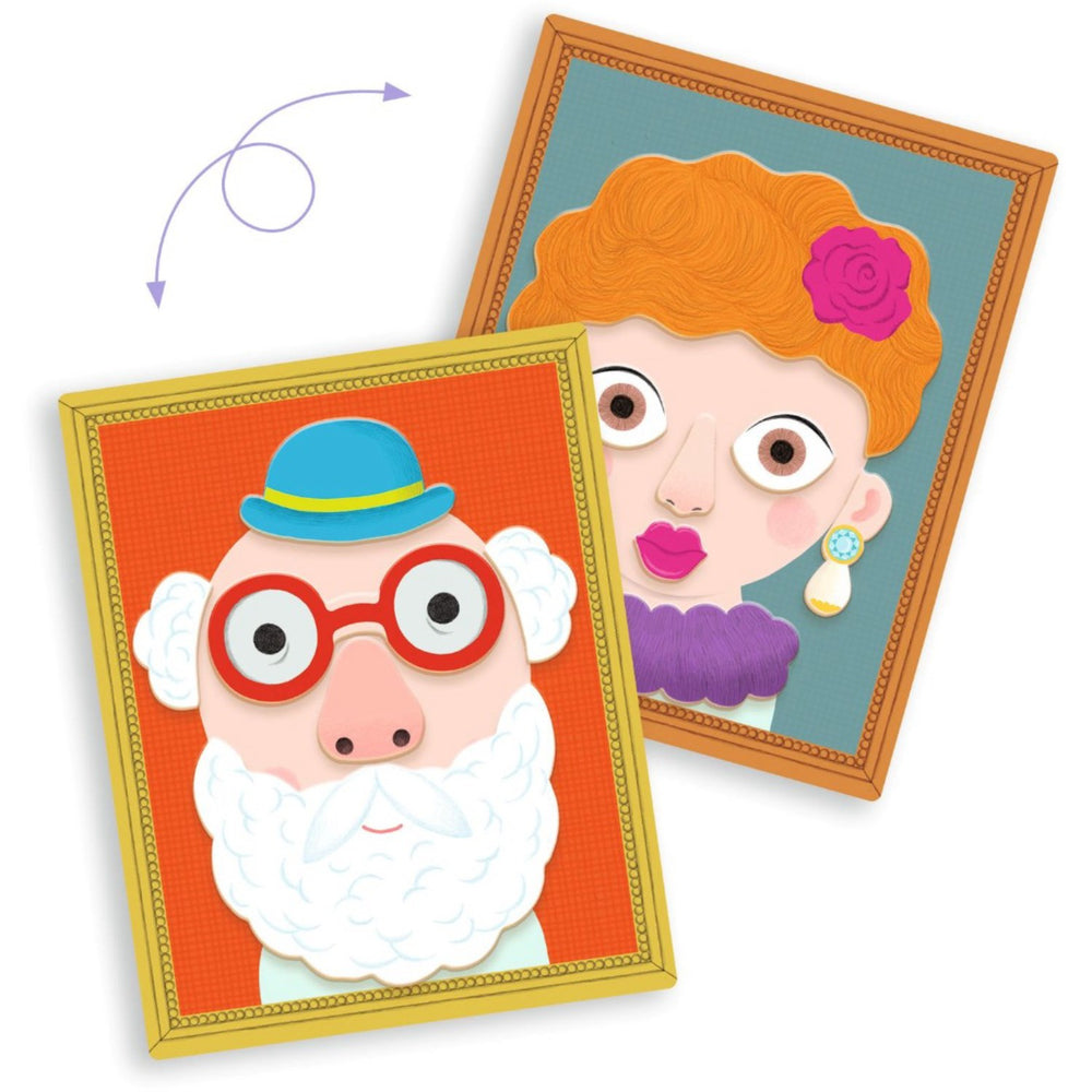 Recreate the 12 portraits shown on the cards and choose the right side of the box