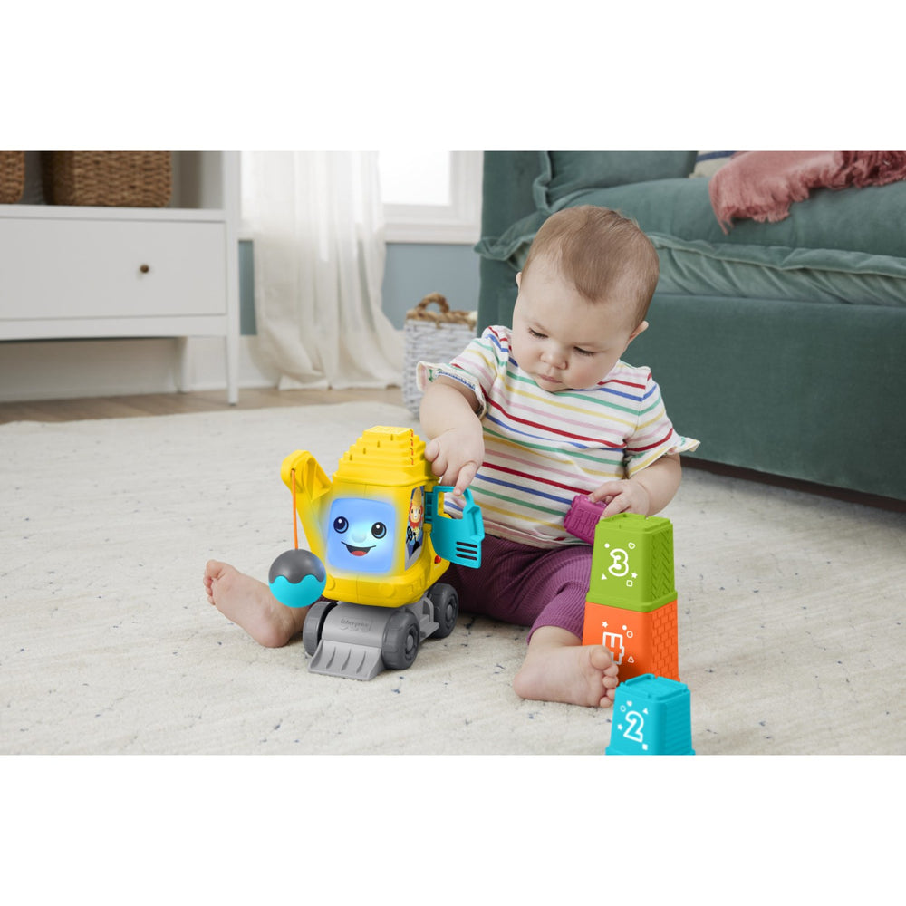 Discover the joy of learning with Fisher-Price® Count and Stack Crane! This delightful toy allows young children to develop number, color, and shape recognition skills as they stack the four numbered bricks. Each brick activates entertaining sounds and phrases, enhancing engagement and interactivity. Intended for toddlers, the crane is designed with safety in mind, featuring smooth edges and sturdy construction. It's easy to use; children can press a music button or open the playful lion's door for additional visual and auditory stimuli. Its compact design ensures easy portability and storage, while the surface is simple to clean, maintaining a hygienic play environment. Choose from multiple language settings, including Swedish, Danish, Finnish, Norwegian, and English, making it a versatile addition to any child’s playroom. Perfect for little ones on the move, this toy encourages physical activity and fine motor skill development as kids roll and crawl after the rattling demolition ball. Embrace a multifunctional toy that's packed with fun and learning!