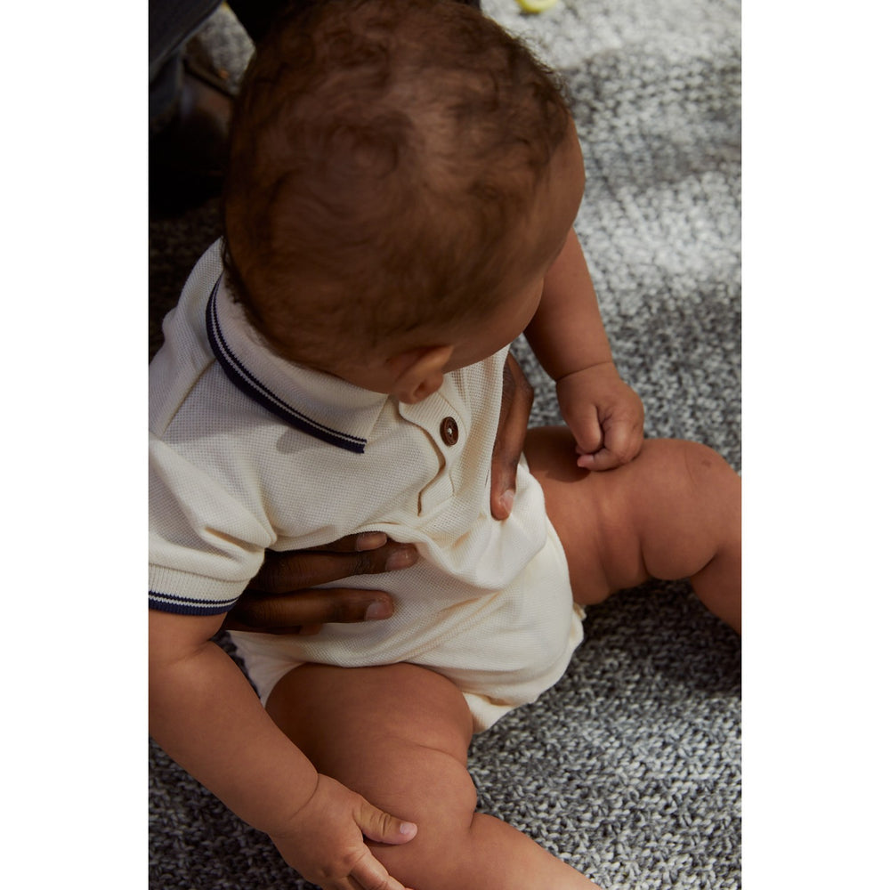 COPENHAGEN COLORS Cream Comb. Pique Polo Romper - 56 상품이 재입고 되는대로 발송하도록 하겠습니다
