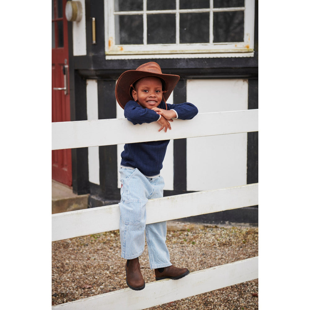Discover the perfect blend of style and practicality with our Copenhagen Colors Denim Blue Stripe Cargo Pants. Crafted from 100% soft cotton, these pants feature a classic striped twill design that's both chic and playful. The adjustable waist ensures a snug, comfortable fit for growing kids, while multiple pockets provide ample storage for their little treasures. The subtle embroidery on the right back pocket adds a touch of elegance. Ideal for daily wear, these cargo pants combine durability and ease of care, making them a must-have in any child's wardrobe.