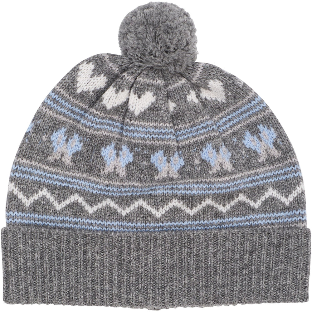 Introducing the perfect winter accessory for your little one: the Copenhagen Colors DK Grey Comb Cashmere Beanie. Crafted from sumptuously soft cashmere, this beanie ensures warmth and comfort with a lightweight feel. The playful hearts pattern and cute pompom add a stylish touch, making it a fun addition to any child's wardrobe. This elegant grey beanie, easy to care for, promises both durability and chic comfort for chilly days. Ideal for keeping your child cozy and fashionable during wintertime adventures.