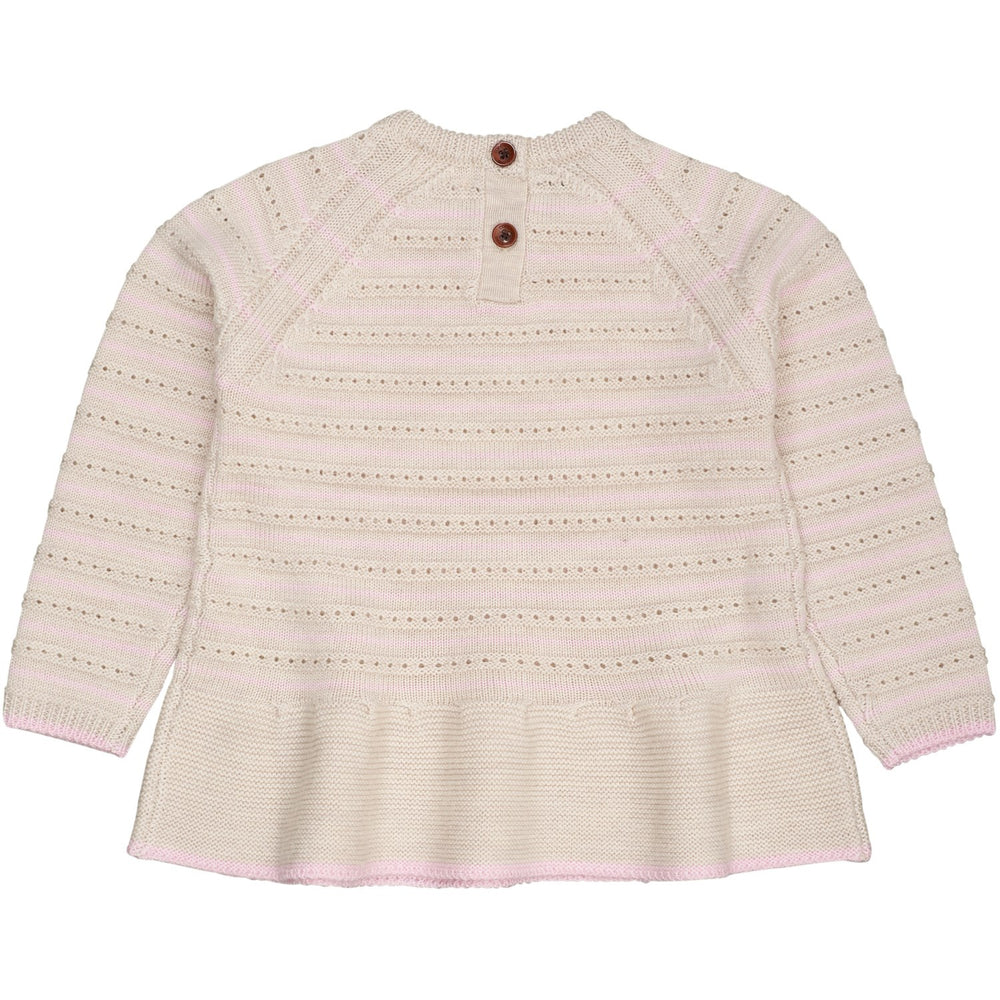 COPENHAGEN COLORS Pale Cream Mel./Bubblegum Comb Merino Hole Pattern Blouse W. Frill