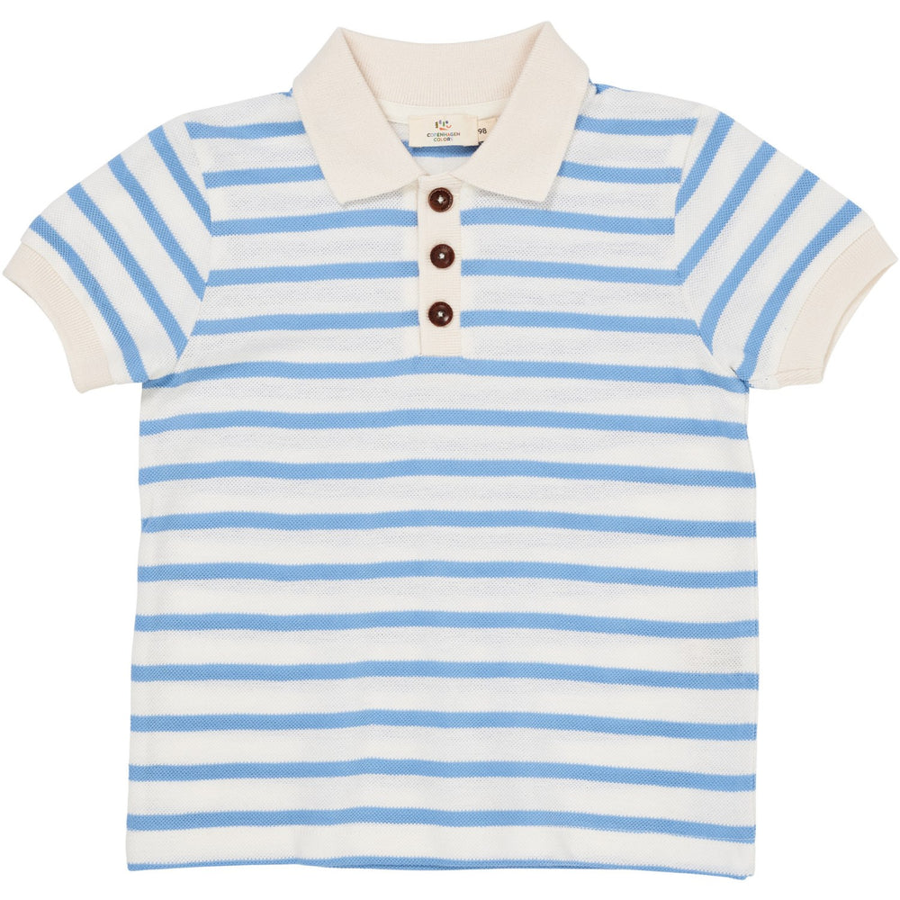 COPENHAGEN COLORS Sky Blue Stripe Pique Stripe Poloshirt