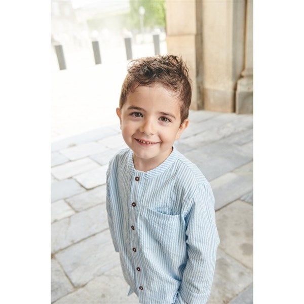 Give your little one a stylish and comfortable look with Copenhagen Colors Sky Blue W Cream Stripe Seersucker Shirt. This charming shirt is made from lightweight and breathable seersucker material, perfect for play and learning. The sky blue design with cream stripes adds a breath of fresh air to your child's wardrobe, while the comfortable fit ensures your child can move freely. The shirt is easy to care for and stays nice even after many washes. An ideal choice for both everyday wear and special occasions.