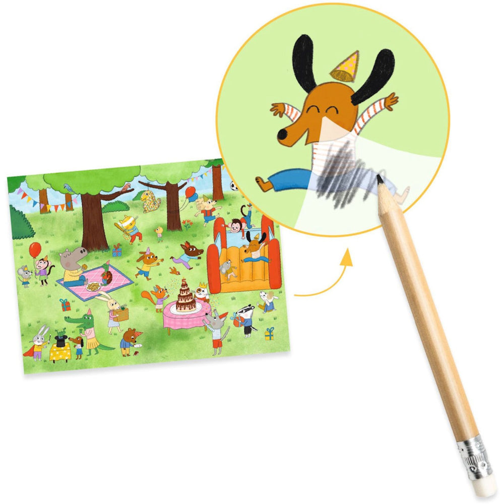 Djeco Decay, Party Time, is the perfect toy for creative souls. With three different large backgrounds and over 100 festive rub pictures, kids can develop their fine motor skills and boost their creative skills by designing scenes from birthdays, carnivals and festivals themselves. This interactive play activity strengthens children's decision-making skills as they choose and arrange the elements, and is ideal for engaging the whole family in a fun and artistic get-together that brings everyone closer together. Age: 5 - 8 years Materials: Paper (FSC), Plastic Washing instructions: Remember to follow the washing and use instructions