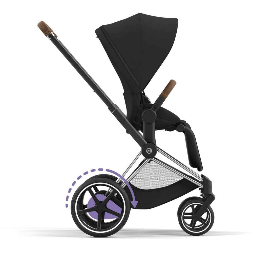 Discover the future of child mobility with the Cybex Chrome Brown E-Priam Stroller, a prime example of where innovative smart technology harmoniously blends with sophisticated design. This e-stroller is specifically calibrated for comfort and convenience, supporting parents on various terrains from sandy beaches to cobbled streets with its intelligent hill assist and adaptive surface features.