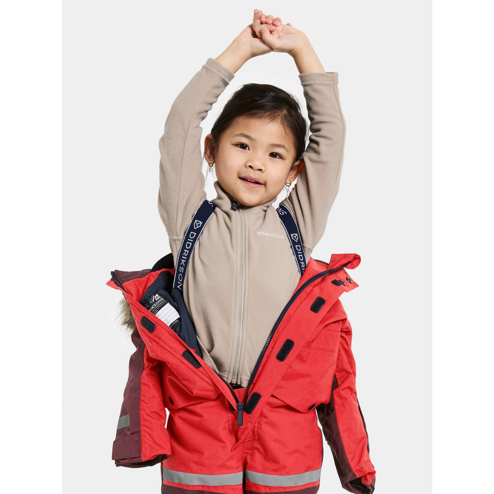 The Didriksons snowsuit is not just a piece of winter wear but a comprehensive gear that supports uninterrupted play and exploration, making it an essential addition to your child's winter wardrobe. Its thoughtful design and functional features promise to deliver comfort, durability, and protection, keeping your little ones snug and stylish during their outdoor adventures.