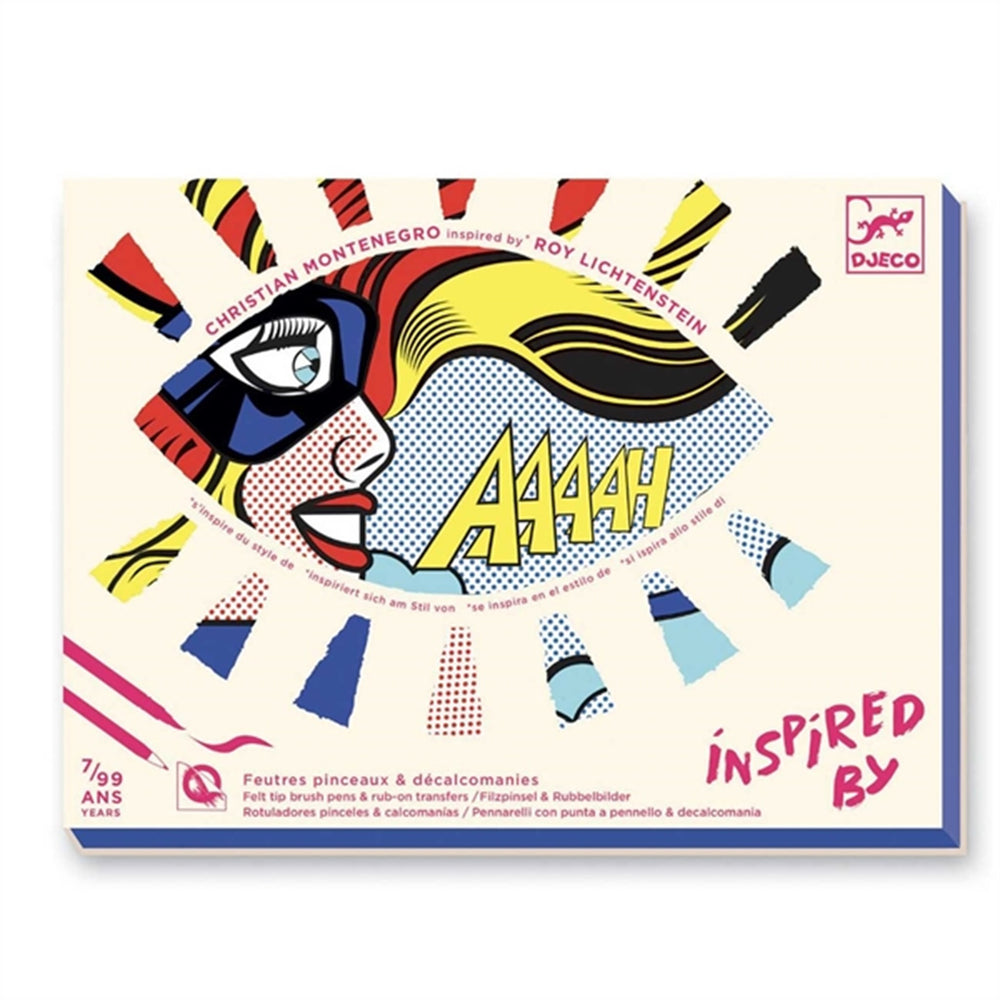 Then put the final details on the artwork with the fine transfer images. The inspiration is found in the artist Roy Lichtenstein (1923-1997).