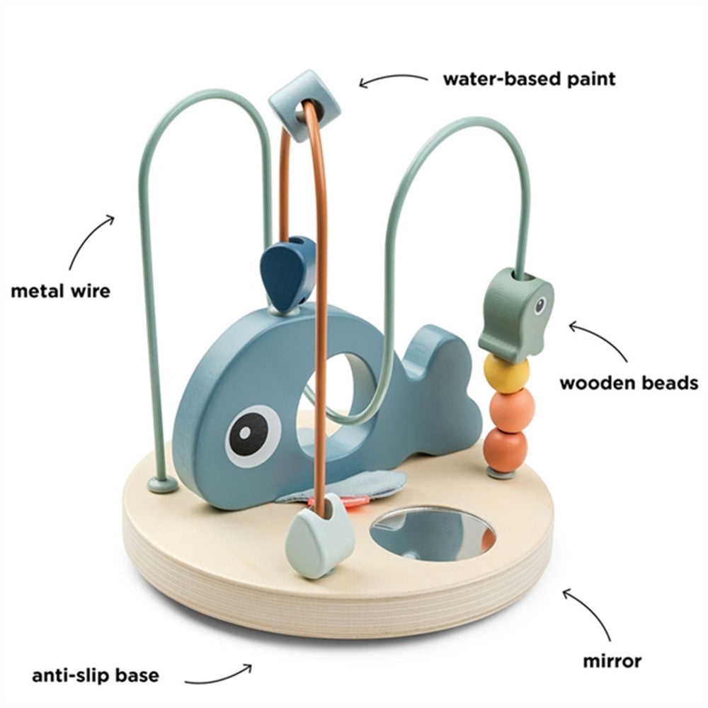Introduce your little one to the captivating world of ocean adventures with the Done by Deer Bead Maze Wally Blue. This charming toy is crafted from sustainably sourced wood and non-toxic, water-based paint, ensuring a safe play environment for your child. Its sturdy base keeps it stable while your child enhances their fine motor skills and pincer grip maneuvering colorful beads and fish through intriguing paths. The soft, crackling fins and the reflective mirror add sensory layers to the experience, making each play session both educational and engaging. Easy to carry and simple to store, this delightful maze promises joy and learning in every touch.