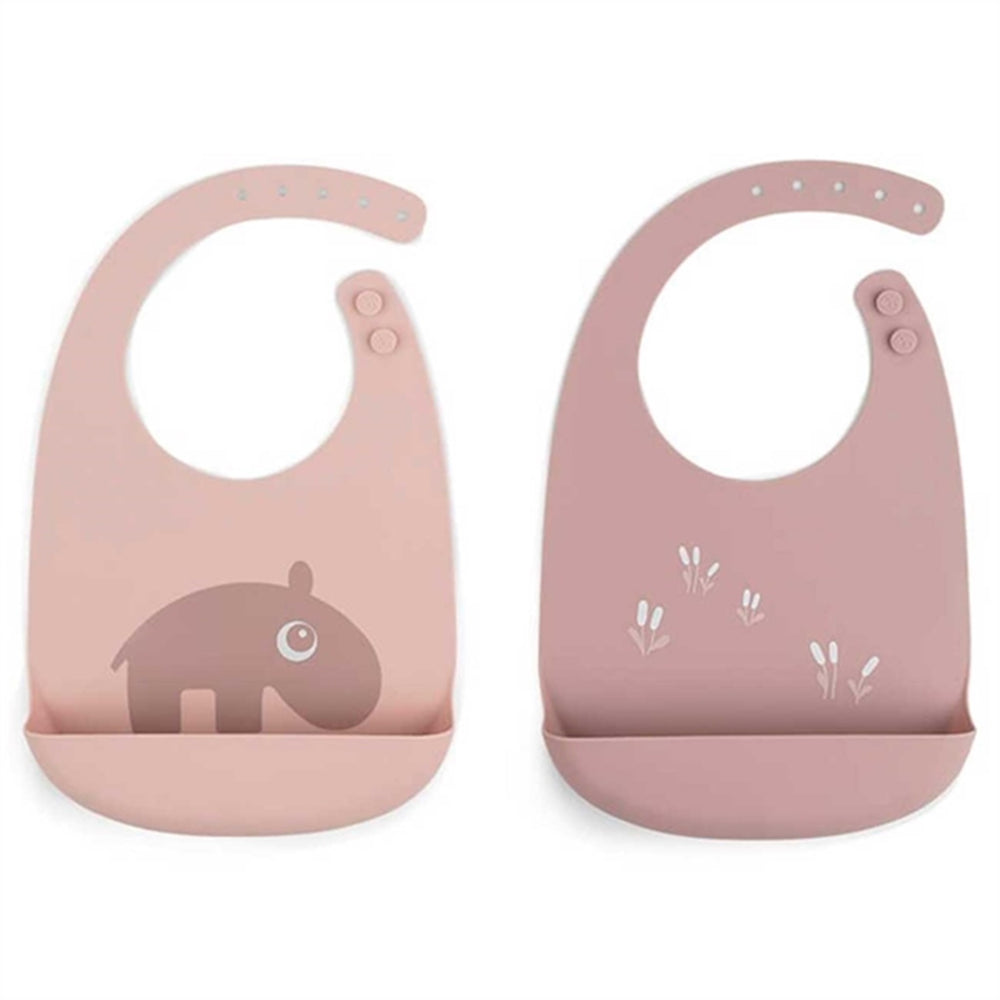 Introducing the delightful Done by Deer Silicone Bibs in a soothing Ozzy Powder design, perfect for your little ones. This two-pack features bibs made from 100% food-grade, BPA-free silicone, ensuring a safe dining experience. Each bib comes with a handy food-catching pocket and an adjustable neck strap with a secure double button closure for a comfortable fit. Designed for convenience, these bibs are effortlessly easy to clean—simply wipe them down or pop them in the dishwasher. The charming soft powder color and cute Ozzo print not only keep your child clean but also engaged during mealtime. Ideal for busy parents, these bibs promise to make feeding times both fun and fuss-free.
