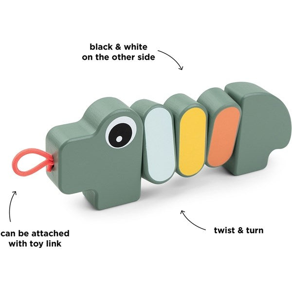 Elastic loop for toy link makes it easy to attach to a pram pillow or cozy lounger
