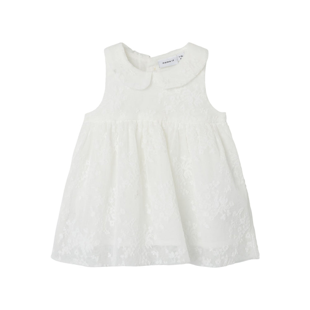 Dress your little one in the Name It Jet Stream Hisilla Spencer Dress, ideal for spring and summer! This sleeveless dress features a charming O-neck, adorned with an intricate lace design that creates a stylish, delicate appearance. Crafted from 100% polyester with a polyester lining, it ensures comfort and maintains privacy with a non-transparent finish. Detailed with a button fastening for easy dressing, its regular fit promotes great freedom of movement, making it perfect for playdates or family gatherings. This dress's vibrant and patterned appearance brings a bright and fashionable addition to any child's wardrobe.