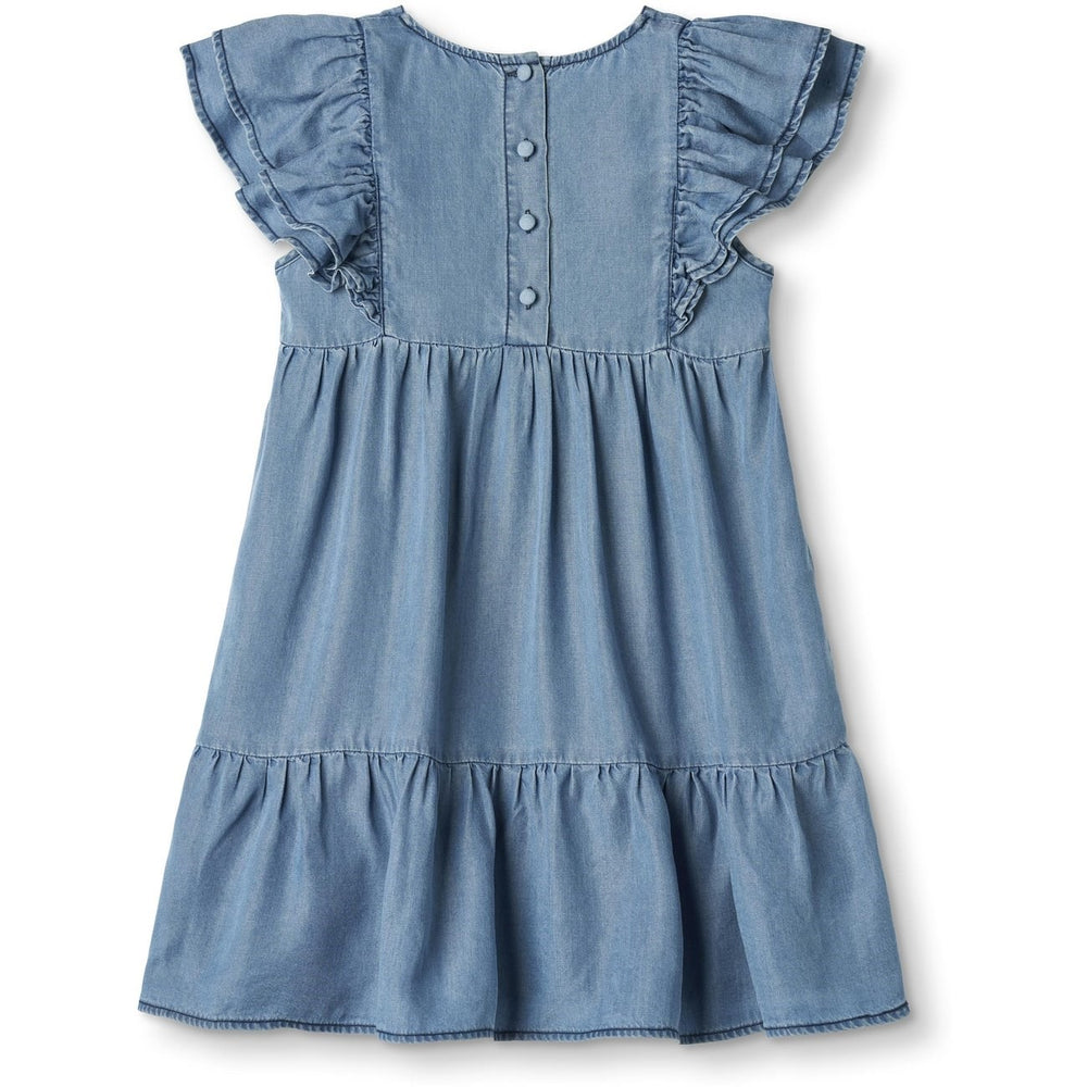 Our HI Dress is made in the softest denim-like look in 100% tencel. A quality that stays buttery soft, wash after wash. It has ruffles at the bottom and large ruffle sleeves. This gives the dress character and a feminine look.