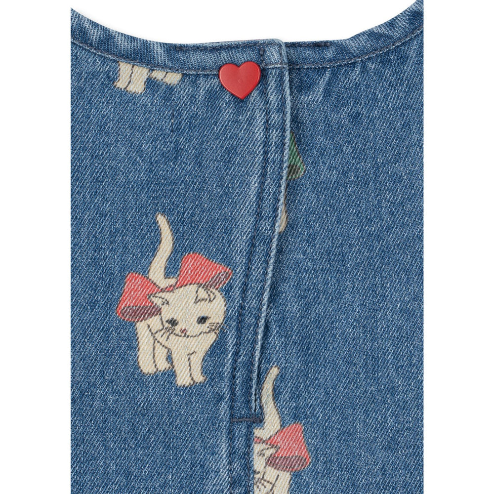 Explore the charming world of children's fashion with the Konges Sløjd Bow Kitty Denim Magot Dress. Crafted from soft, GOTS-certified denim, this dress features a timeless A-shaped silhouette, enhanced by a playful heart-shaped button closure at the back. Its delightful design and comfortable fit make it perfect for both special occasions and everyday play. Ideal for the fashionable young individual who enjoys style without sacrificing comfort. Materials: 100% Organic Cotton