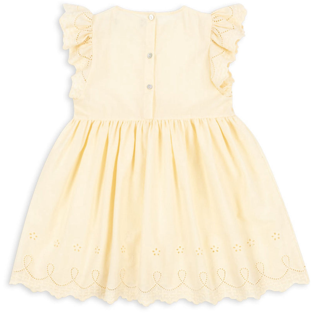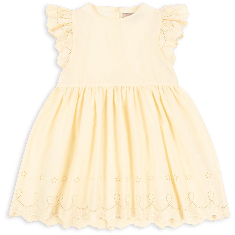 Discover the charm of the Konges Sløjd Cloud Cream Posey Dress, perfect for young fashionistas. Crafted from 100% soft cotton voile, this dress features exquisite broderie anglaise details, offering a blend of comfort and style. Its creamy hue and delightful pattern enhance its airy design, making it ideal for all occasions. Easy to care for, it promises both durability and endless grace for your little one.