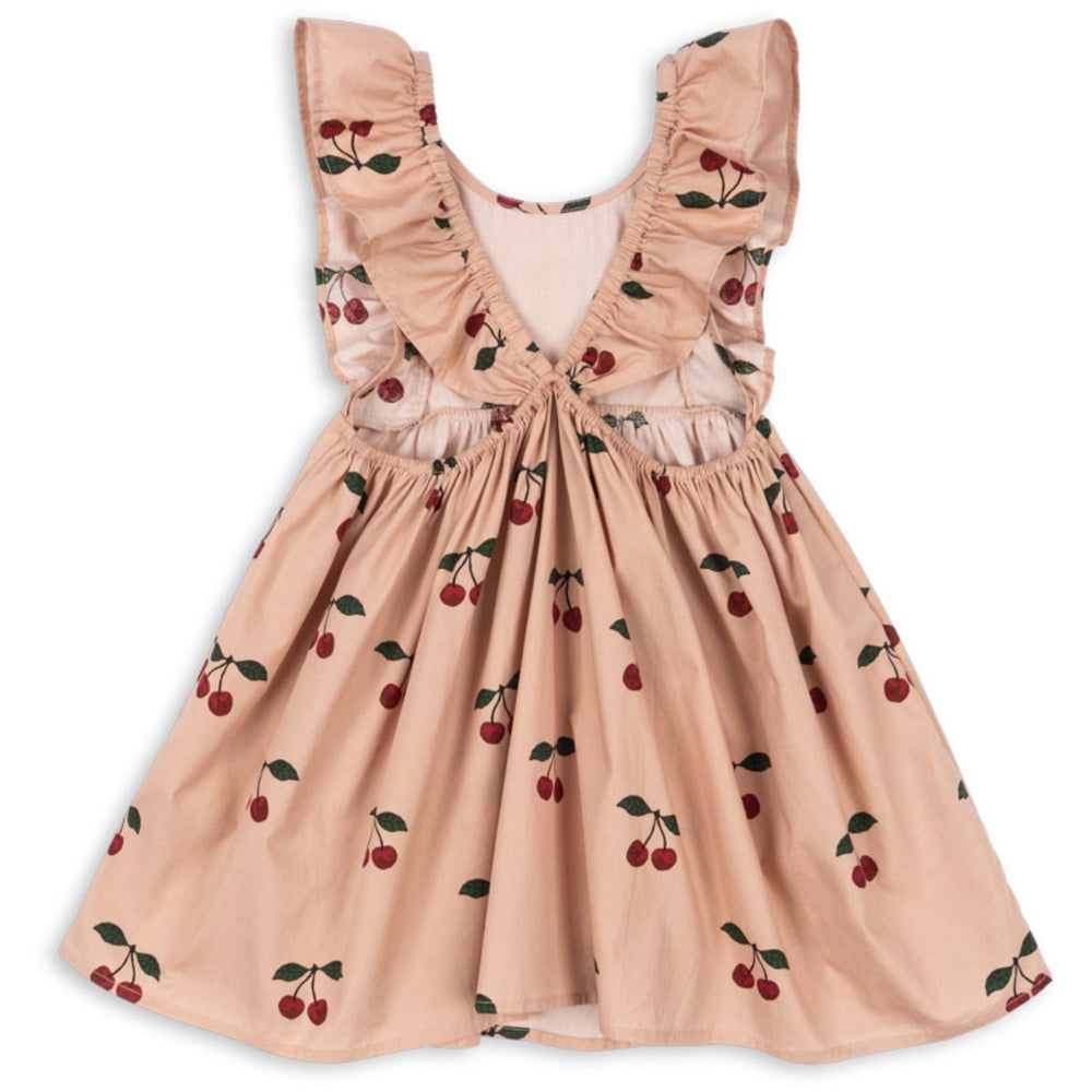 Introducing the Konges Sløjd Ma Grande Cerise Blush Verbena Dress, an epitome of comfort and style for your child. Crafted from 100% organic cotton, this eye-catching dress brings together softness and sustainability with its GOTS-certified material. It features delightful frill straps and a unique v-back design, adorned in a gentle blush color with an inviting pattern that captures the innocence and joy of childhood. Perfect for daily wear or special occasions, this durable dress ensures an easy-breezy fit while being easy to care for, ensuring that it remains a favorite in your little one’s wardrobe.
