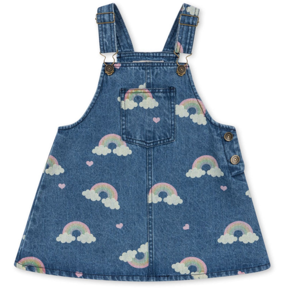 Introduce your little one to the delightful charm of the Konges Sløjd Rainbow Magot Overall Dress. Crafted from 100% GOTS-certified organic cotton, this soft denim fabric dress features classic buckle straps for a timeless appeal. The vibrant design ensures your child stands out while the durable material promises easy care—simply wash it separately to maintain its vibrant color and quality. Whether for a playdate or a casual family outing, this dress combines style, comfort, and sustainability perfectly.