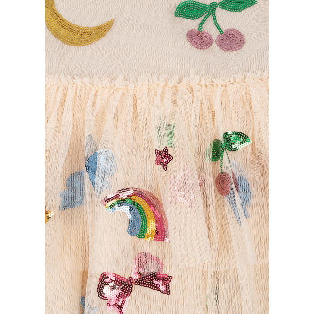 Introduce your little one to a world of enchantment with the Konges Sløjd Rainbow Twinkle Yvonne Puff Dress! Crafted from 100% polyester for a voluminous tulle design and lined with 100% cotton for comfort, this dress showcases short puff sleeves and a charming V-back. Adorned with sparkling sequin embroidery, it combines whimsical style and practical wearability, ensuring your child looks magical at any festive gathering. The soft, breathable materials make it perfect for all-day wear, while the eye-catching design ensures your little one stands out in style. Ideal for special occasions or playful dress-up days, this dress is a wardrobe must-have that blends fascination with comfort.