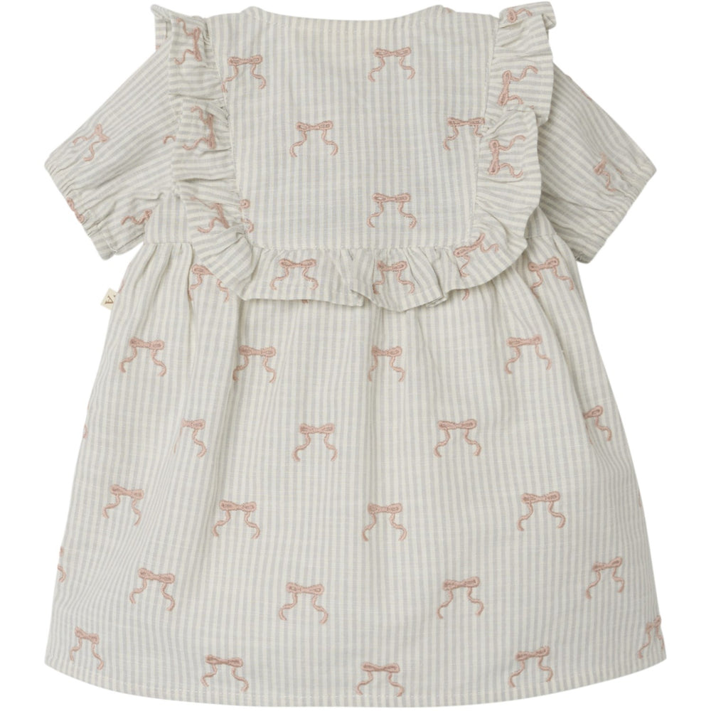 Discover the charming Lil'Atelier Coconut Milk Kendra Loose Body Dress for your little one, perfect for enhancing any child's wardrobe. This dress is crafted from woven fabric with a classic criss-cross pattern, giving it a lightly textured, sophisticated feel. It features a grandad neck, short sleeves with elasticated cuffs, and a convenient button fastening, ensuring both style and easy wearability. Adorned with delightful frills and a playful all-over print, this dress combines fun and elegance. Its loose fit and soft material prioritize comfort, making it ideal for any activity. Whether for a special occasion or daily wear, this dress is versatile and caring, with machine washability for hassle-free maintenance. Bring a touch of style and comfort to your child's everyday adventures with this adorable piece. Fit: Loose Fit Materials: 100% Organic Cotton Materials and care: Wash with similar colors. Recommended: Wash before use. Max. shrinkage 5% Washing instructions: Maximum Washing Temperature 40°C - Normal Process