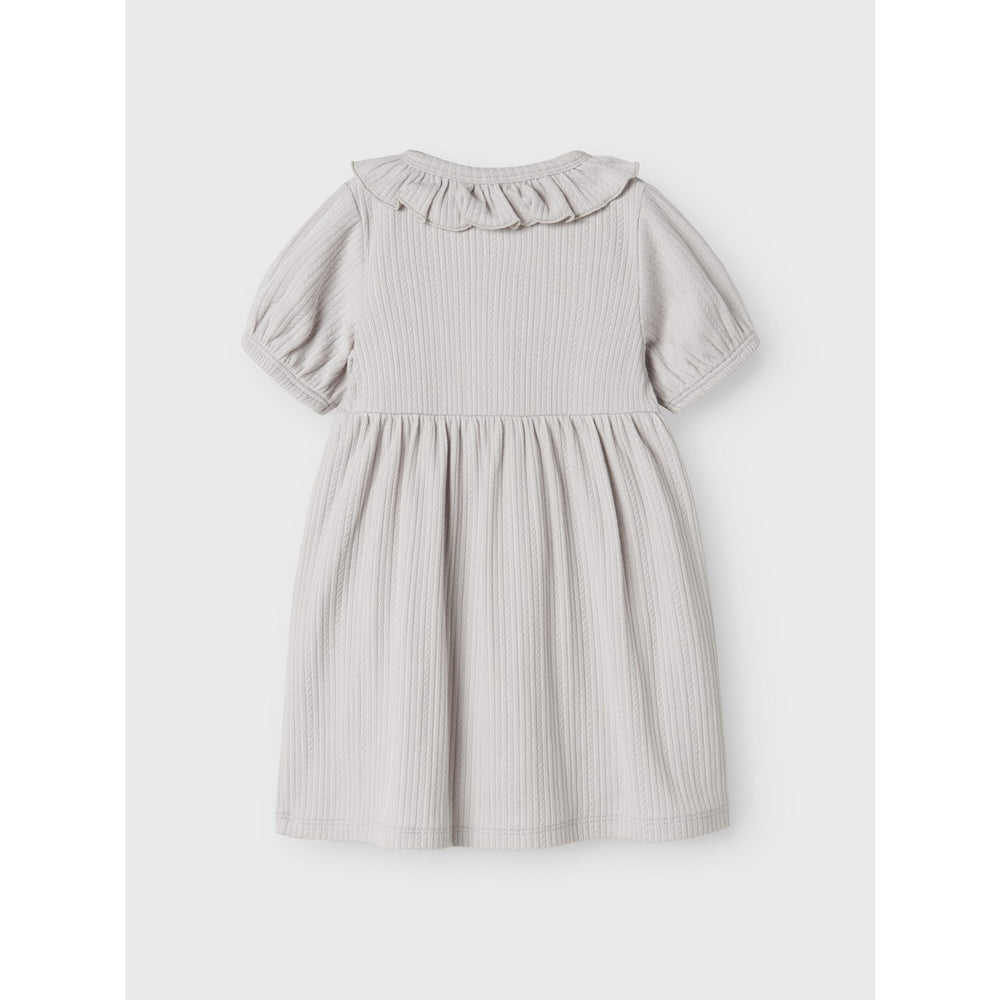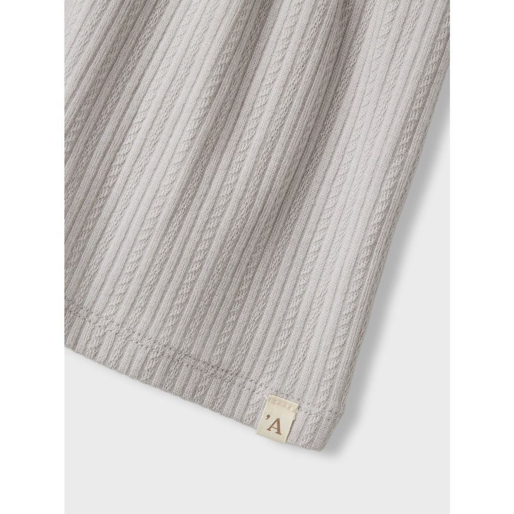 Introducing the charming Lil'Atelier Vapor Blue Fleura Body Dress, a stylish and functional addition to your child's clothing collection. Crafted from soft, stretchy jersey fabric, this dress ensures ample comfort and freedom of movement, making it ideal for playtime or special occasions. The vapor blue hue combined with delicate frill accents and babylock details adds a touch of elegance, while the practical designs like the grandad neck, short sleeves with elasticated cuffs, and dual button and press stud fastenings in the crotch area enhance wearability and ease of dressing.