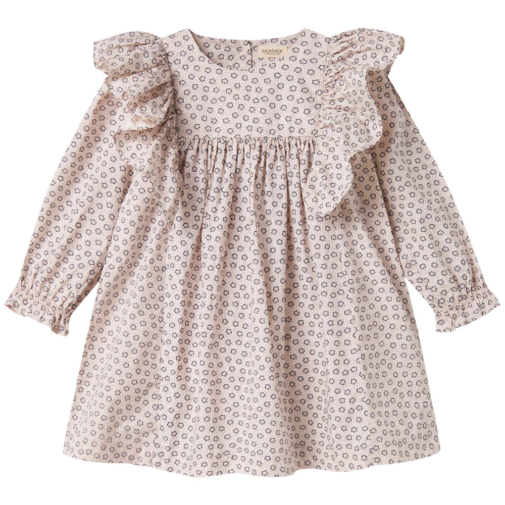 Introducing the stunning MarMar Poplin Autumn Flower Daria Dress, perfect for children who love to twirl and play. This charming long-sleeved dress, featuring a vibrant floral print and exquisite ruffle details, promises both style and ease. Expertly crafted with a button closure at the back for simplicity, it’s designed for a comfortable above-the-knee fit. Ideal for both special occasions and everyday play, this piece combines fashion with functionality, ensuring your little one stays comfortable and stylish all day long. Perfect for pairing with leggings or tights, it’s a versatile addition to any child’s wardrobe. Materials: 100% Cotton (Organic) Washing instructions: Wash - Machine wash 30°C gentle, Bleach - Do not bleach , Drying - Do not tumble dry, Ironing - medium, Dry Clean - Do not dry clean Light and crispy cotton quality Orginal hand-drawn prints Breathable quality Oeko-tex® - Tested for harmful chemicals