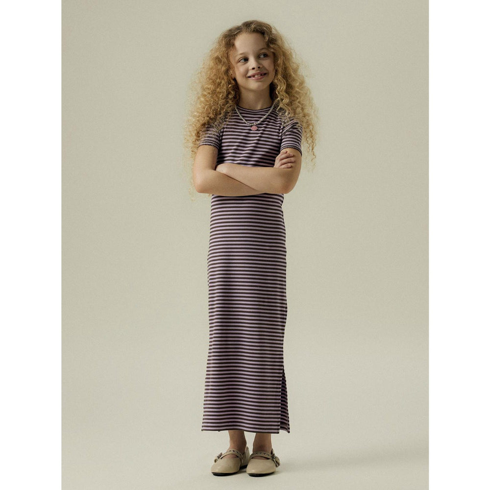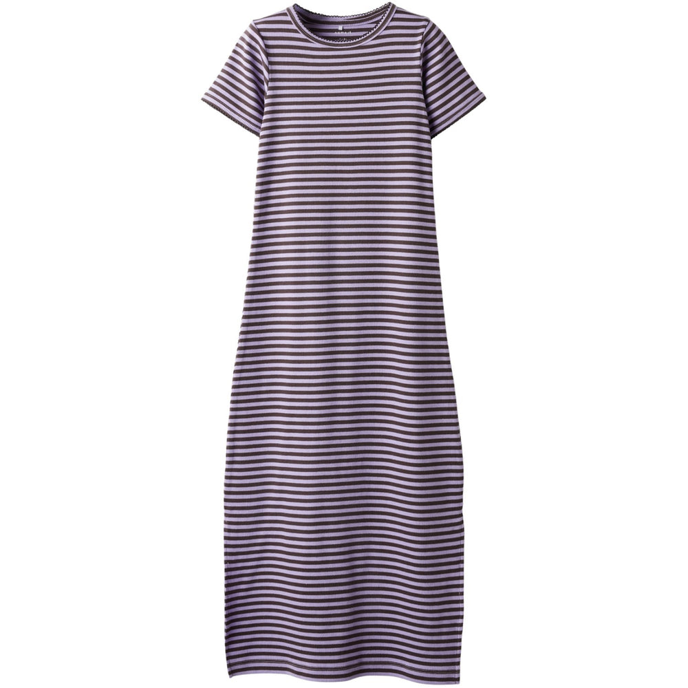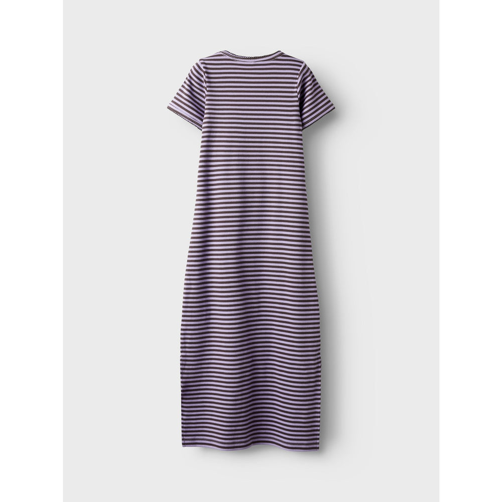 Discover the charm of our Name It Lavendula Nkfhelina Ss Dress, designed to add a touch of elegance and comfort to your child's outfit collection. Crafted from soft rib knit with a classic striped pattern, this dress features a comfortable regular fit with a round neck and short sleeves. The addition of side slits offers extra mobility, making it perfect for playful days or special occasions. Breathable and stretchy, this dress maintains its shape and charm wash after wash. Ideal for children who love to look and feel great, no matter the season.