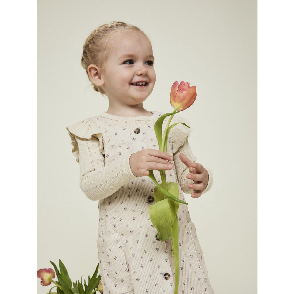 Introduce your little one to the joy of spring with the vibrant Name It Summer Sand Bisille Spencer Dress. Crafted from luxuriously soft corduroy with a velvety rib surface, this sleeveless spencer dress features a cheerful print scattered across its entirety. The round neck and button fastening ensure easy wearing while maintaining a snug, comfortable fit. Ideal for both casual and dressy occasions, it promises durability and easy care, keeping your child stylish and comfortable all season long.