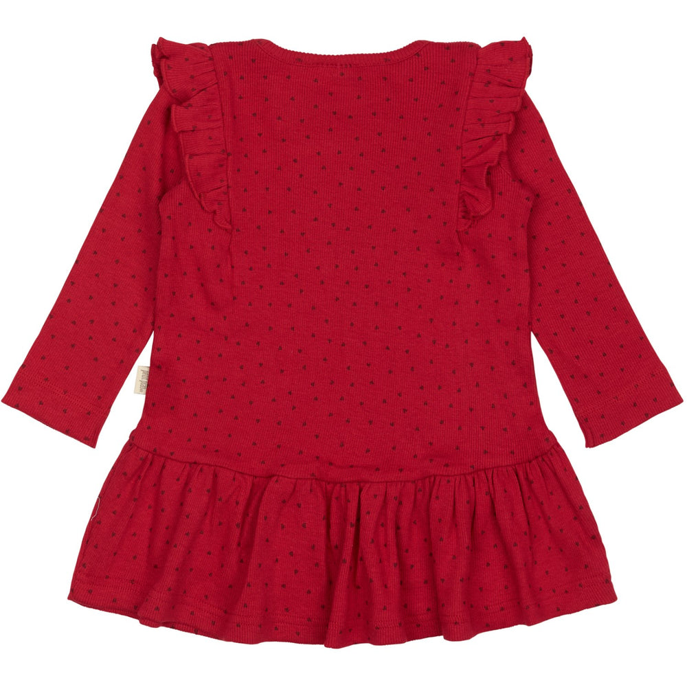 Petit Piao Jet Red/Biking Red Dress L/S Frill Modal Heart