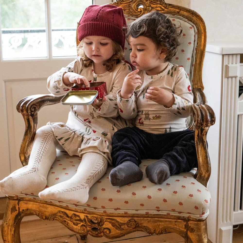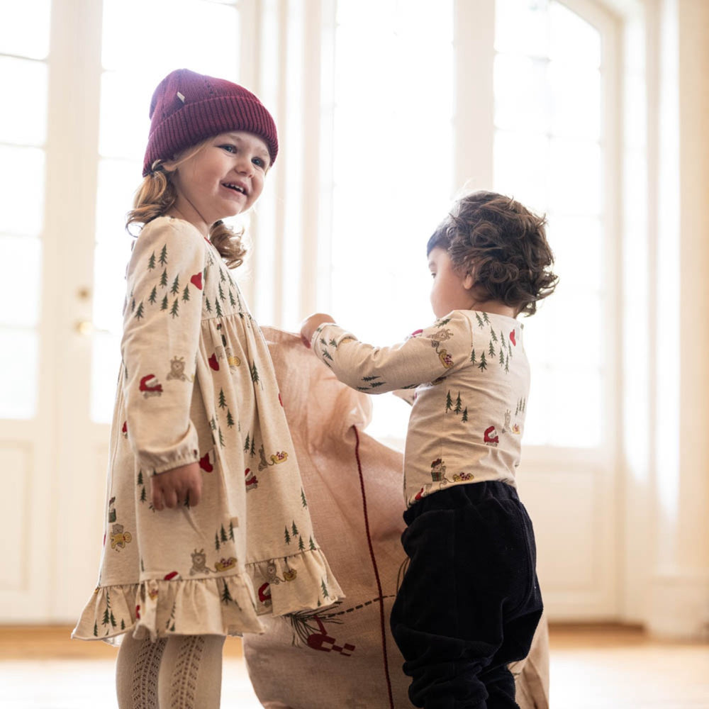 Light up your little one’s festive wardrobe with the enchanting That's Mine Christmas Polar Bear Marthine Dress. This delightful piece features a playful Christmas Polar Bear print, perfect for holiday cheer. Adorned with charming ruffles at the bottom and elasticated sleeves for a snug fit, it ensures comfort and style. The practical snap button at the back makes dressing hassle-free. Ideal for seasonal celebrations, your child will look adorable and feel comfortable all day long.