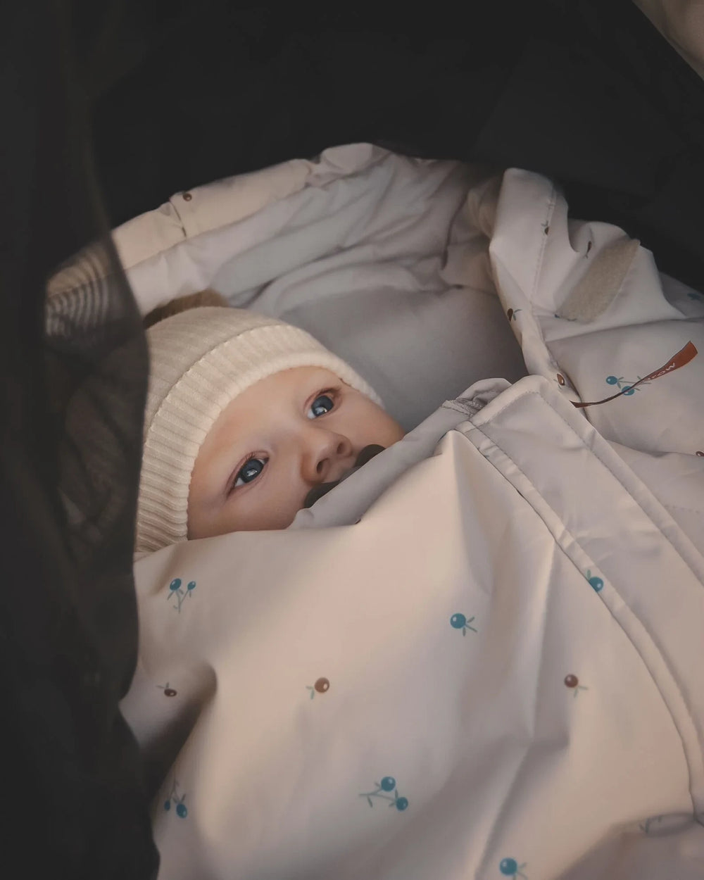 Moreover, the Mysig is adept in withstanding cooler climates, being windproof with a water resistance rating of 3000mm. The adjustable hood snugly encloses to provide added warmth and comfort. Easy to maintain, it's streamlined for light and easy storage, allowing families to keep organized and on the move. Choose from three stylish colors including the delightful Berry Blue pattern, adding a touch of style to your child's outdoor adventures, all while stimulating their senses and encouraging engagement with their cozy surroundings. Age: 0-4 years Closure: Zipper Filling: Recycled polyester from corn fiber Lining: Soft Cotton Materials: Filling: Recycled polyester from Corn fiber. Shell: Recycled Polyester. Inner Fabric: Soft Cotton. Washing instructions: 40 Degrees. Dry flat or tumble dry Water column pressure (mm): 3000 Certifications: OEKO-TEX® STANDARD 100