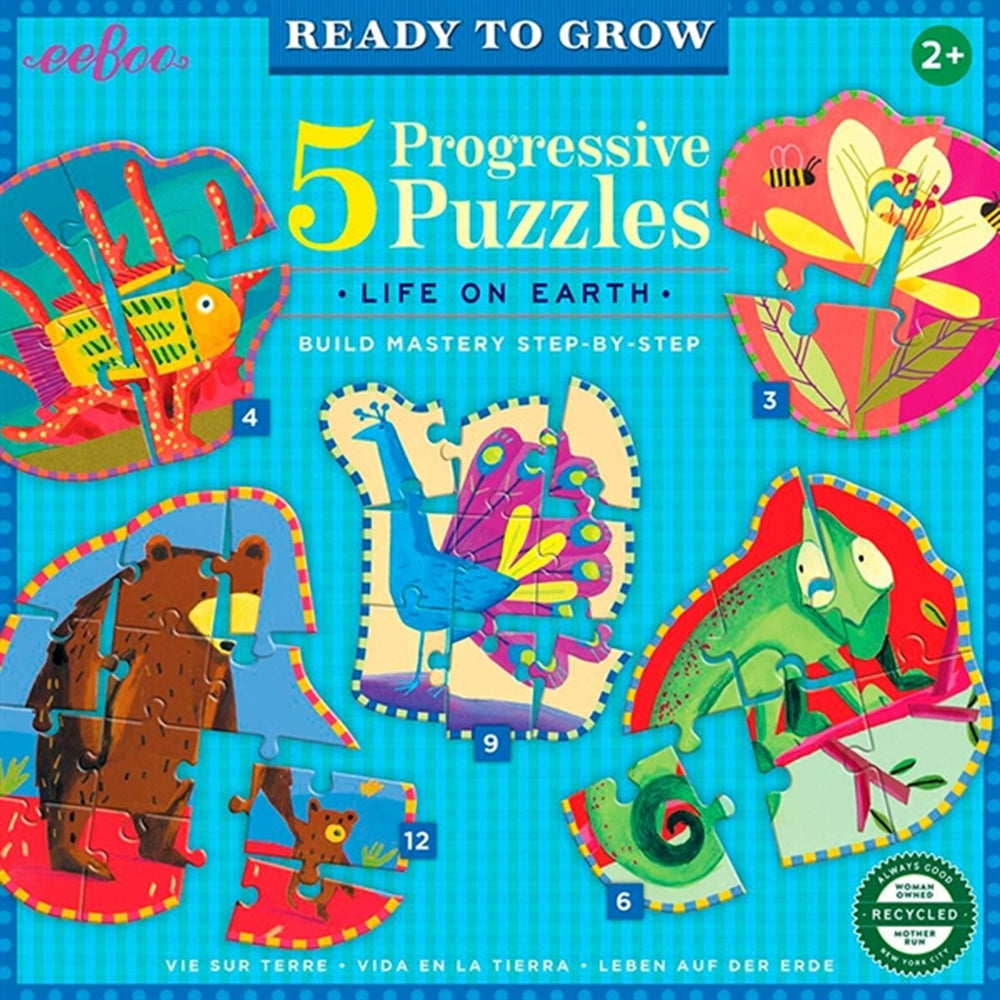 Eeboo 5 Puzzles 3-12 Pieces - Wild Life