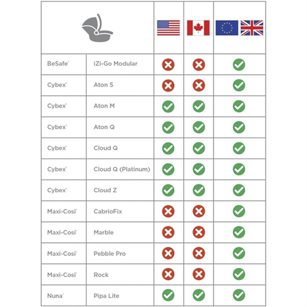 - Compatible with Cybex®, Nuna®, BeSafe® or Maxi Cosi® Group 0/0 + car seats to create a sleek and compact travel system