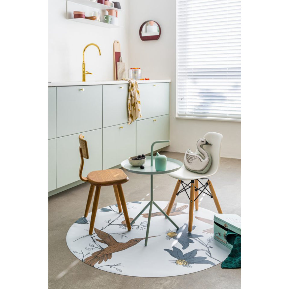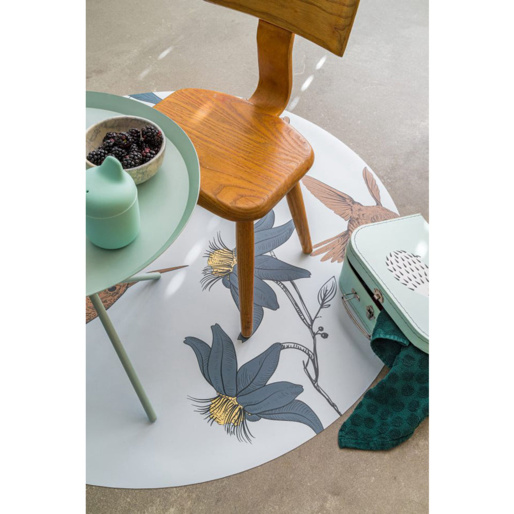 Discover the charm and practicality of the Everleigh & Me Hummingbird Blå Stoleunderlag, a delightful addition to your child's dining experience. Designed by Frederikke, who sought to blend aesthetics with functionality, this non-slip underlay ensures safety at the dining table. Its high-quality, eco-friendly PVC material is easy to clean, BPA-free, and meets rigorous safety standards. The underlay also features a non-slip bottom to prevent the highchair from sliding backward. With its generous 105 cm diameter, it's versatile for both eating and play activities. Simply roll it up for easy storage when not in use, making it an excellent choice for busy parents who value both beauty and practicality in children's accessories. Materials: Soft vinyl (PVC) Measurements: 105 centimeters in diameter