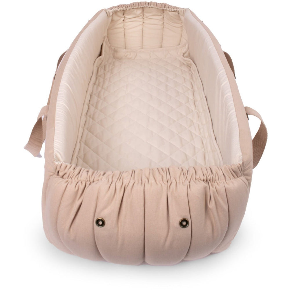 Constructed with GOTS-certified organic cotton and cold-pressed foam, it is soft yet durable. The compact dimensions, featuring a 70 cm long and 28 cm wide interior, offer sufficient space for babies up to 6 months or 9 kg, without sacrificing portability and storage ease.