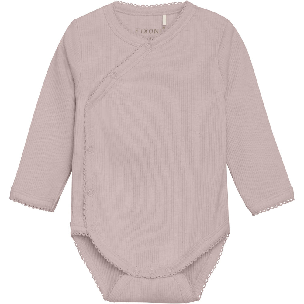 Introduce your little one to the comfort and style of the FIXONI Pale Mauve Melange Wrap Body LS. Crafted from soft TENCEL fibers in a delicate pale mauve melange, this long-sleeved bodysuit features a convenient wrap design with front and bottom button closures for easy dressing. Perfect for gentle wear and care, it offers a snug fit and flexible comfort for infants. A blend of functionality and elegance, this bodysuit is ideal for daily wear or special occasions, ensuring your baby looks great while staying comfortable.