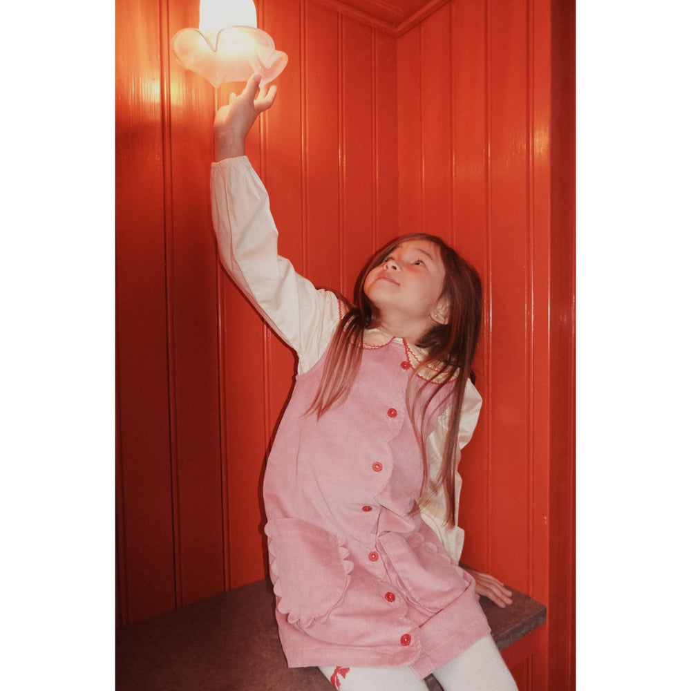 Discover the charming Lollo Dress, perfect for your little one! Crafted from soft cotton corduroy, this delightful dress features a round neck, adorable front pockets with scallop edges, and eye-catching red contrasting buttons. Available in a versatile design, it pairs beautifully with a woven blouse for a stylish ensemble. Designed for comfort and easy care, it ensures your child stays cozy and fashionable at the same time. Ideal for playful days and special occasions alike!