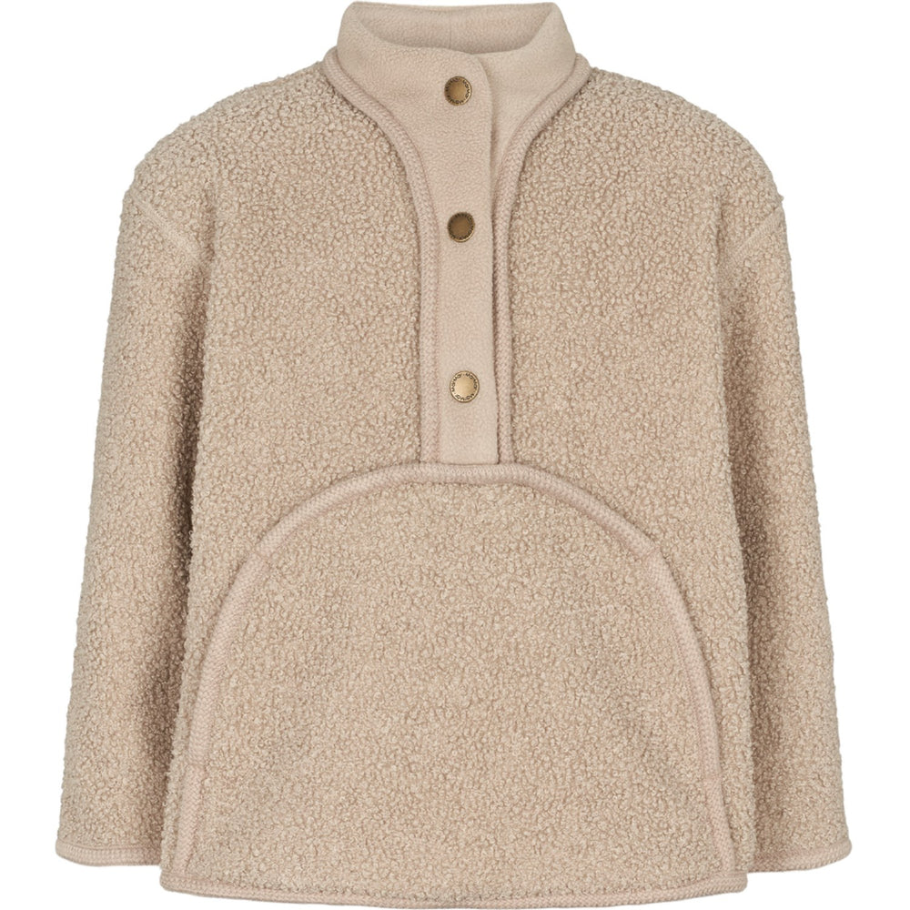 Introduce your little one to the cozy embrace of our MarMar Bonded Teddy Oyster Grey Joy Anorak. Perfectly crafted with a teddy exterior and soft fleece lining, this anorak features a stylish button front closure for easy dressing and a large kangaroo pocket for keeping treasures safe. In a chic oyster grey, it combines functionality with a fashionable edge, ensuring your child stays warm and comfy while looking adorable. Ideal for playful days out or relaxing at home, this piece is a must-have in any child’s wardrobe. Materials: 100% Polyester (Recycled) Washing instructions: Wash - Machine wash 30°C gentle, Bleach - Do not bleach , Drying - Do not tumble dry, Ironing - Do not Iron, Dry Clean - Do not dry clean Certifications: OEKOTEX standard 100, GRS, BSCI Teddy fleece 100% Recycled polyester Soft, warm and comfortable Inner fleece lining Great for outerlayer and as midlayer