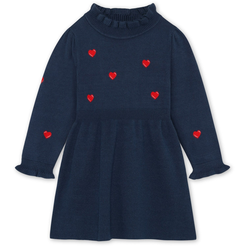 Discover the Fliink Insignia Blue Benna Winter Dress for your child, exquisitely crafted from a blend of 50% LENZING™ ECOVERO™ viscose, 27% nylon, and 23% polyester. This elegant fine-knit dress comes in a rich navy blue adorned with charming red heart accents, offering both style and environmental consciousness. The long sleeves and delightful ruffle details at the neckline and sleeve openings add a touch of whimsy, while the fabric ensures comfort and ease of movement. Ideal for the colder months, it is designed for easy care with machine washability at 30°C on a gentle cycle. This dress does not only bring comfort and style but also supports responsible forestry practices, making it a perfect addition to your little one’s wardrobe.