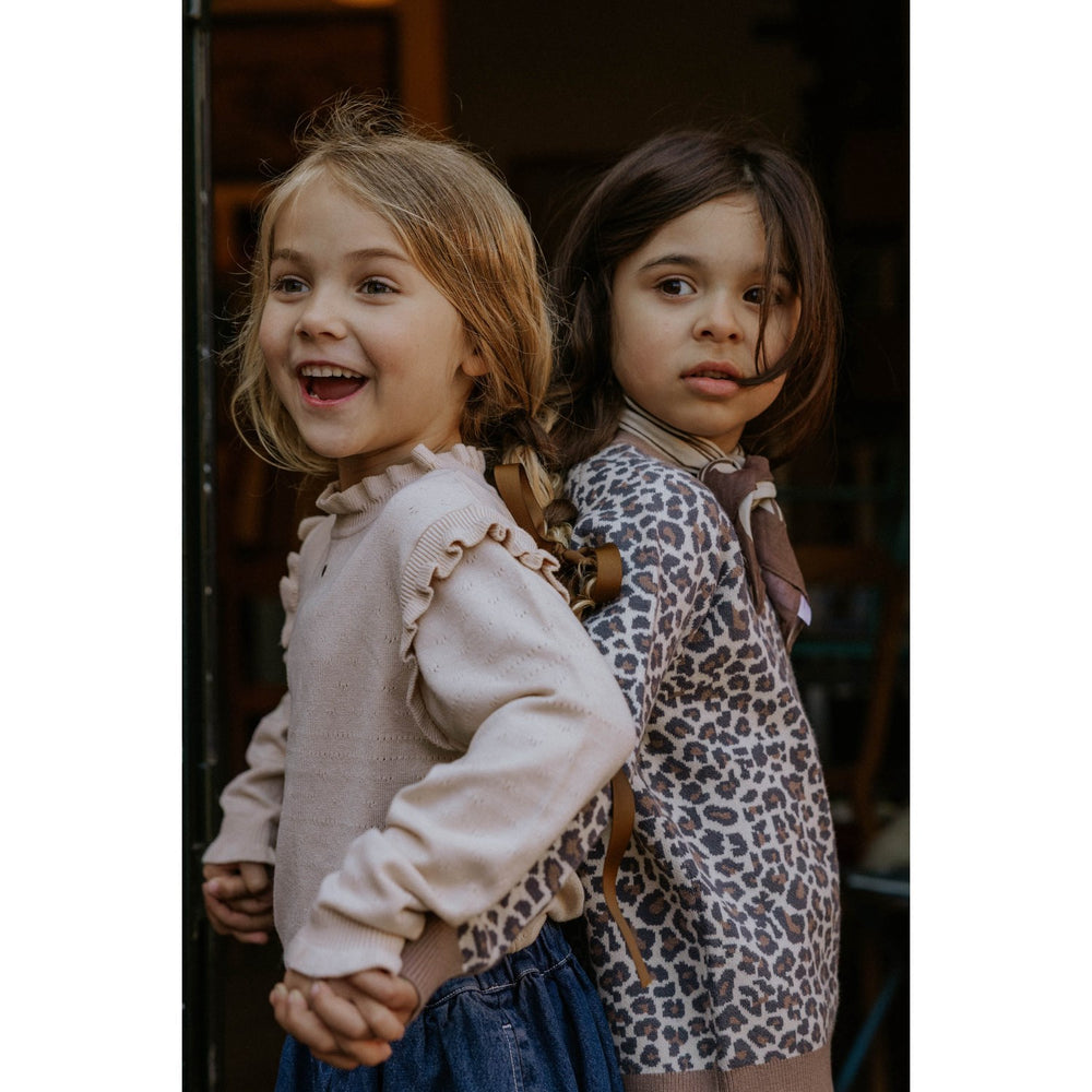 Wrap your little one in cozy style with the Fliink Pine Bark Benna Leo Pullover. This luxurious soft and warm knitted top features a charming leopard print, providing both style and comfort. Tailored with a classic fit and raglan sleeves, it enhances freedom of movement and adds a timeless appeal with its ribbed neck and sleeve trims. Crafted from 50% LENZING™ ECOVERO™ viscose, 27% nylon, and 23% polyester, it combines durable comfort with eco-conscious fashion. Easy to care for, it requires machine washing at 30°C on a gentle cycle and lays flat to dry. Perfect for everyday wear, this pullover ensures your child stays warm while making a responsible environmental choice.
