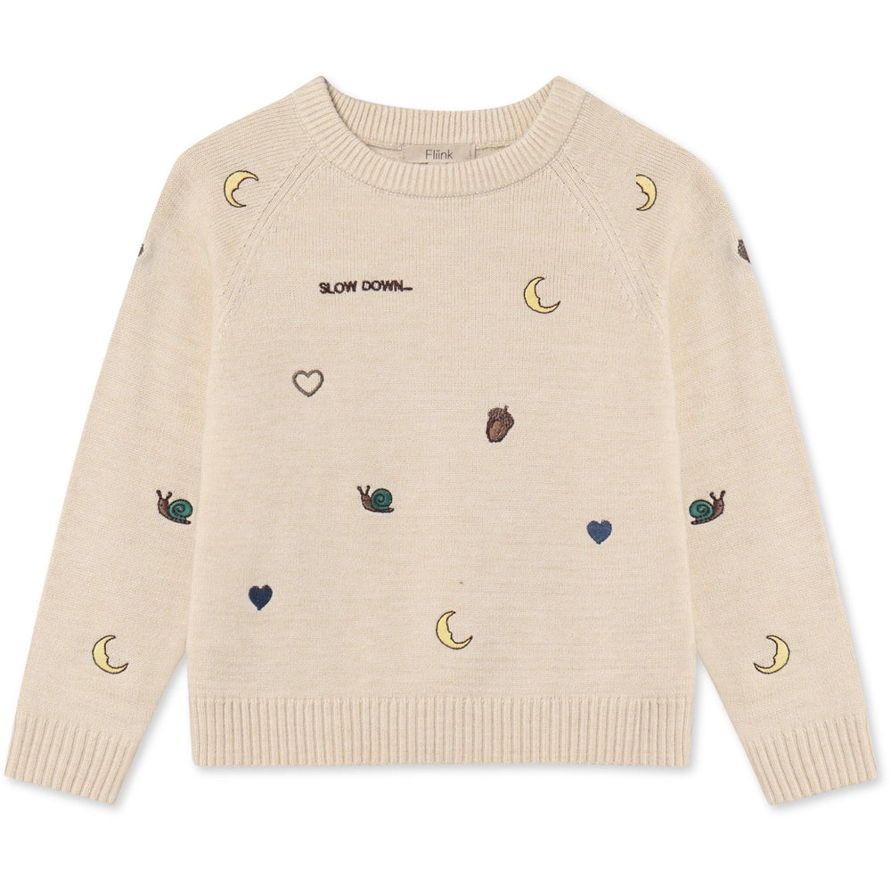 Delight your little one with the Fliink Sandshell Benna Icon Pullover, exquisitely crafted from a blend of 50% eco-friendly LENZING™ ECOVERO™ viscose, 27% nylon, and 23% polyester. This soft and warm knitted sweater features charming embroidered motifs such as hearts, moons, acorns, and snails. Designed for comfort, it has a classic fit with raglan sleeves and ribbed edges at the neck and sleeves, ideal for everyday wear. The pullover is machine washable for easy care and offers both a stylish design and a commitment to sustainability. Perfect for keeping cozy and trendy during playdates or casual outings.